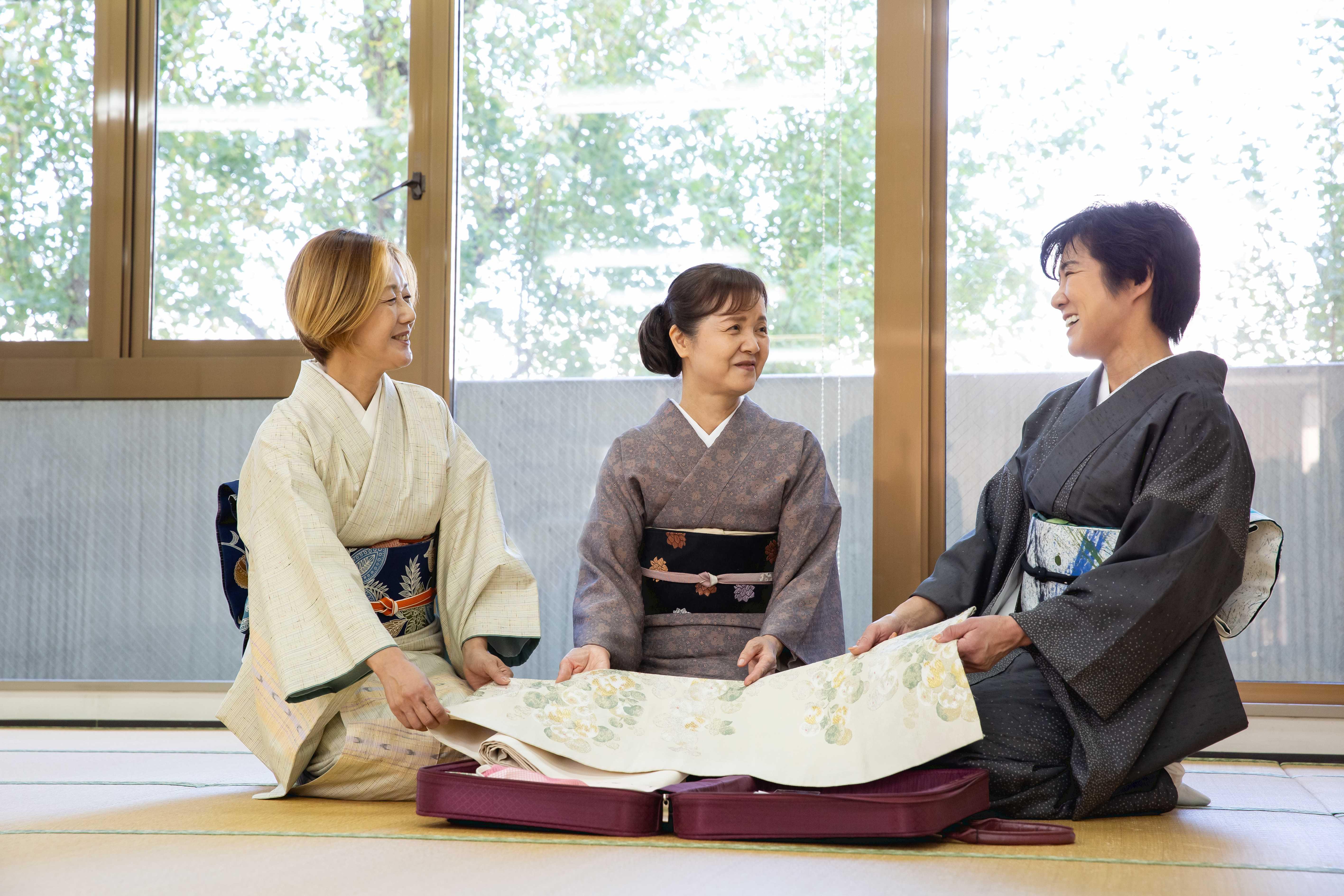 ■ キモノ・帯・着付けに必要なものは全て貸出しいたします。(正絹・サイズも豊富)